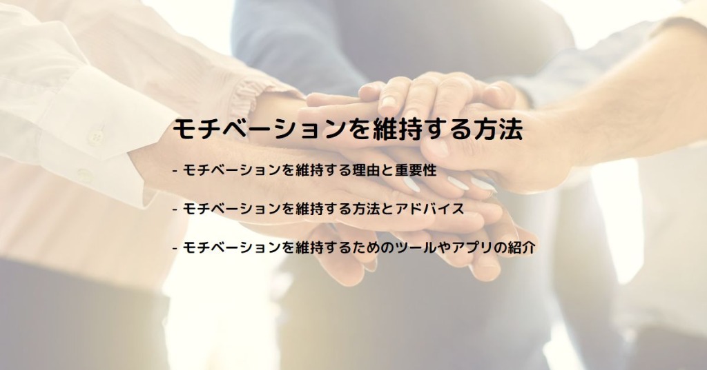 モチベーションを維持するためには、目標を明確にすることが大切です。目標を設定することで、自分が何をしたいのか、何を達成したいのかを明確にすることができます。また、目標を達成するために必要な行動や努力を考えることができます。