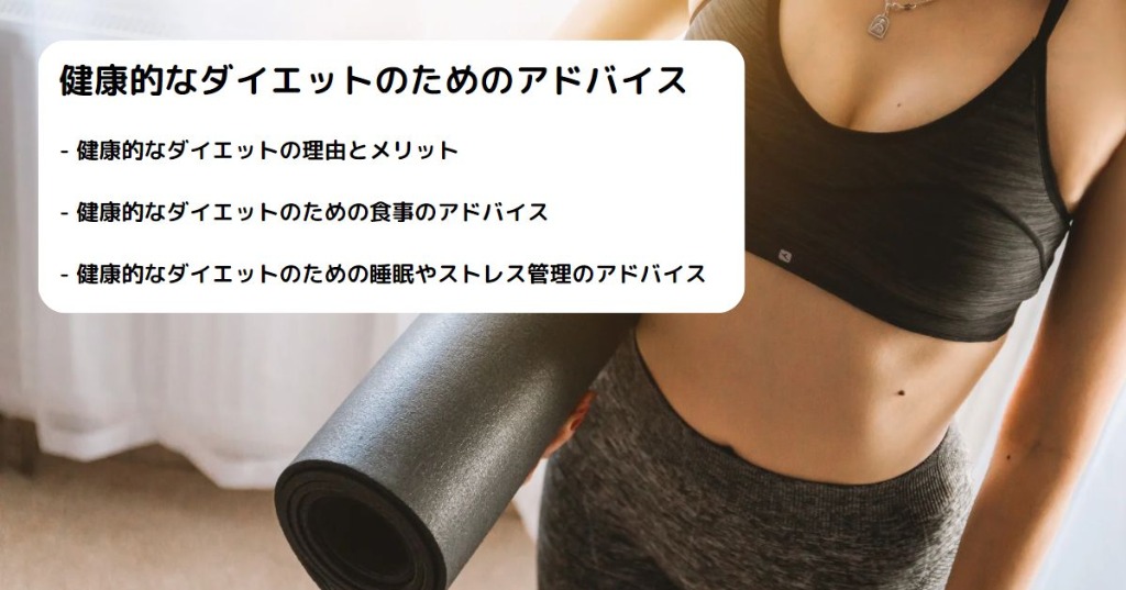 健康的なダイエットをするためには、適切な栄養バランスのとれた食事を摂ることが大切です。また、食事の量を減らすことよりも、食事の質を改善することが重要です。
