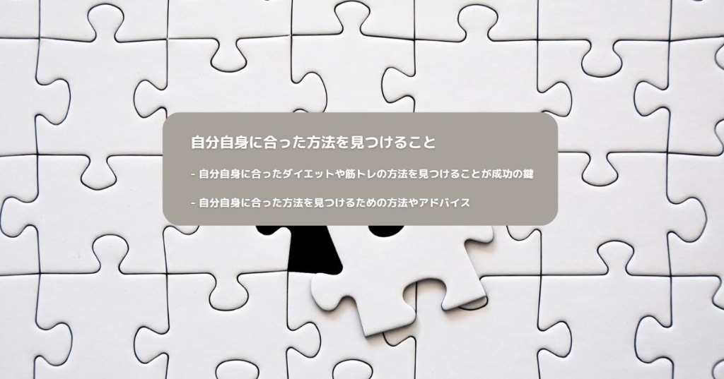 - 自分自身に合ったダイエットや筋トレの方法を見つけることが成功の鍵